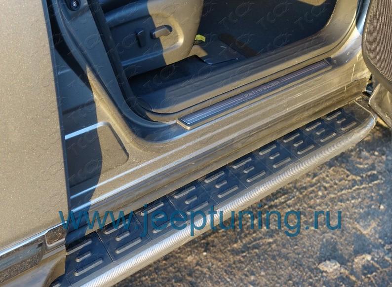 ЗАЩИТА ПОРОГОВ (алюминиевые с пластиковой накладкой,карбон серебро) TCC для NISSAN PATHFINDER