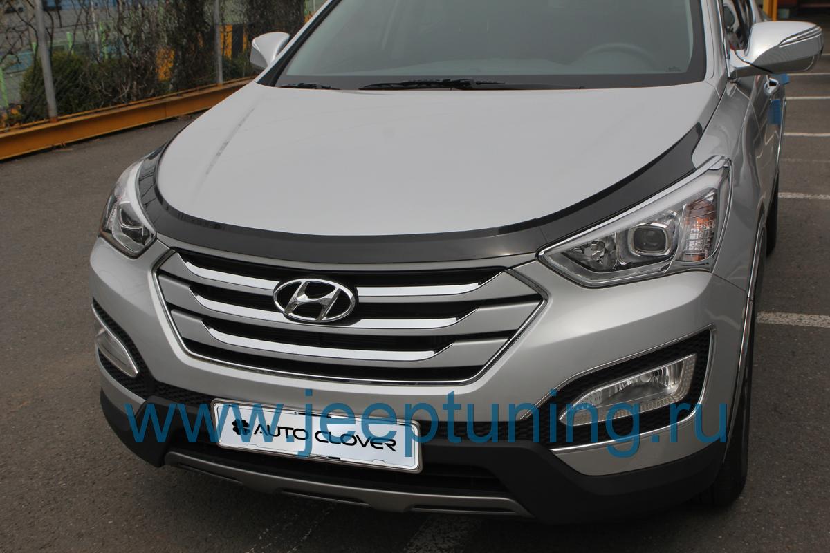 ДЕФЛЕКТОР КАПОТА (из 3 частей,установка на скотч) AUTOCLOVER для HYUNDAI SANTA FE