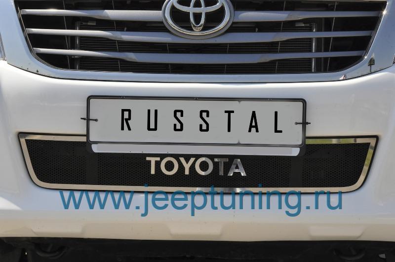 НАКЛАДКА НА РЕШЕТКУ В БАМПЕР (черная сетка с надписью) RUSSTAL для TOYOTA HILUX VII