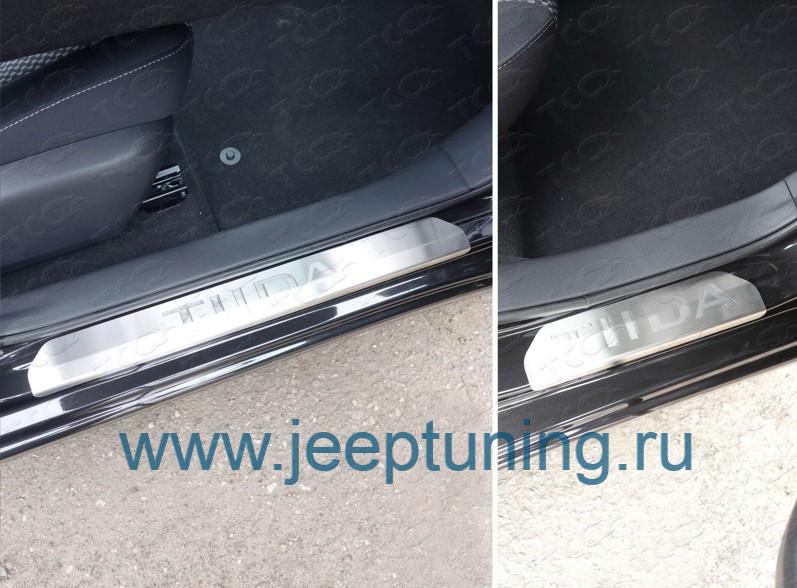 НАКЛАДКИ НА ПОРОГИ 4шт (лист шлифованный с лого) TCC для NISSAN TIIDA