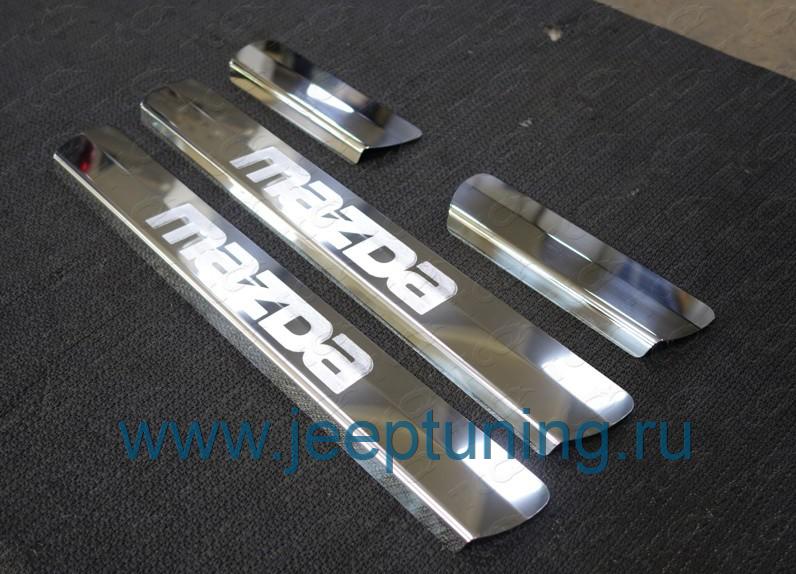 НАКЛАДКИ НА ПОРОГИ 4шт (лист зеркальный с лого ) TCC для MAZDA CX-5