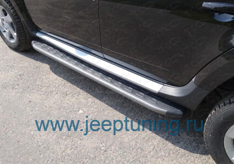 ЗАЩИТА ПОРОГОВ (алюминий,карбон серебро) TCC для RENAULT DUSTER