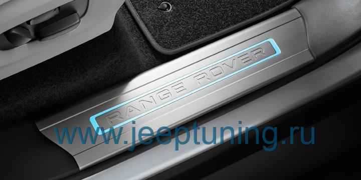РИФЛЕНЫЕ НАКЛАДКИ НА ПОРОГИ СО СВЕТЯЩЕЙСЯ НАДПИСЬЮ RANGE ROVER