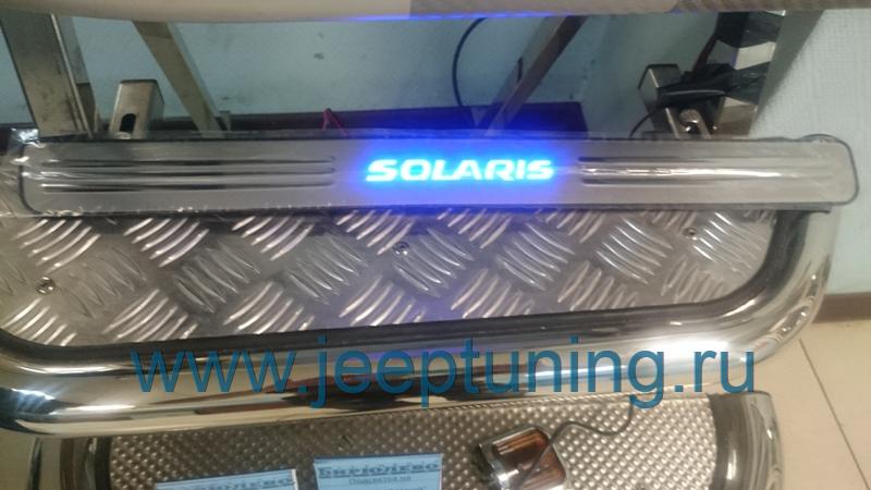 НАКЛАДКИ НА ПОРОГИ 4 шт (с подсветкой) КИТАЙ для HYUNDAI SOLARIS