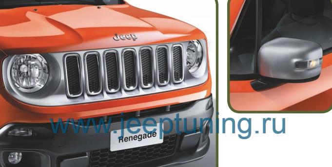 КОМПЛЕКТ НАКЛАДОК НА ЗЕРКАЛА И РЕШЁТКУ РАДИАТОРА (серебристый) MOPAR для JEEP RENEGADE