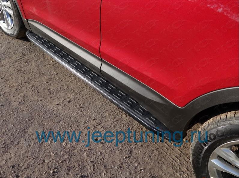 ЗАЩИТА ПОРОГОВ (алюминиевые,карбон черные) TCC для HYUNDAI SANTA FE PREMIUM