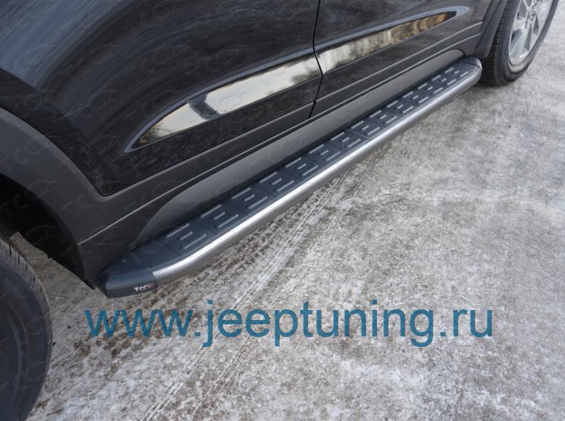 ЗАЩИТА ПОРОГОВ (алюминиевые,карбон серые) TCC для HYUNDAI TUCSON
