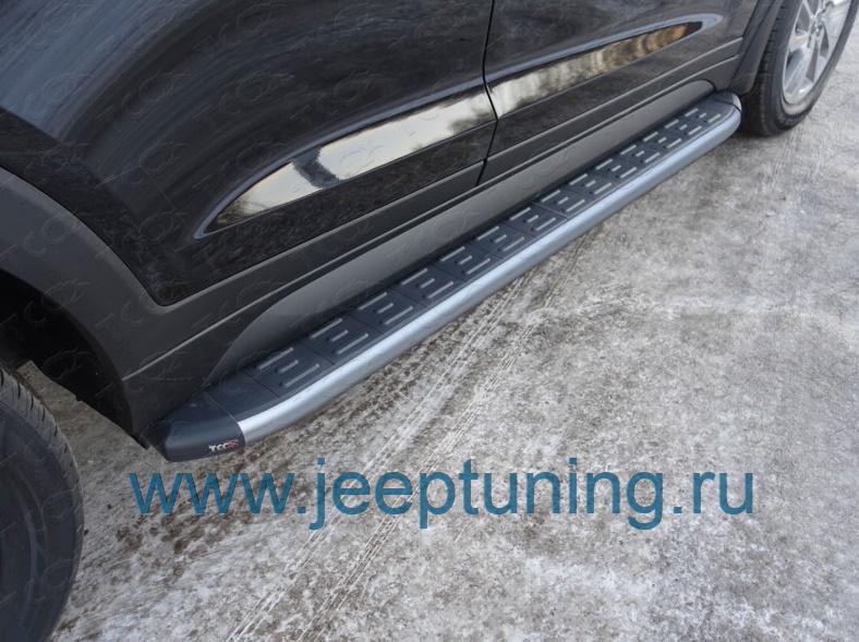 ЗАЩИТА ПОРОГОВ (алюминиевые,карбон серебро) TCC для HYUNDAI TUCSON