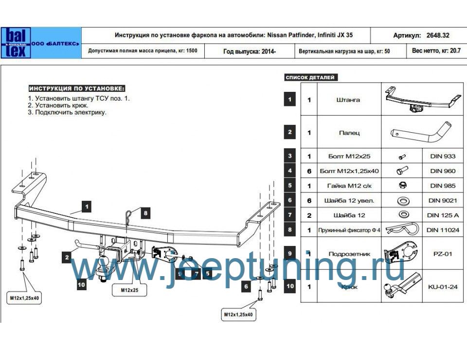 ФАРКОП BALTEX для INFINITI JX35/QX60