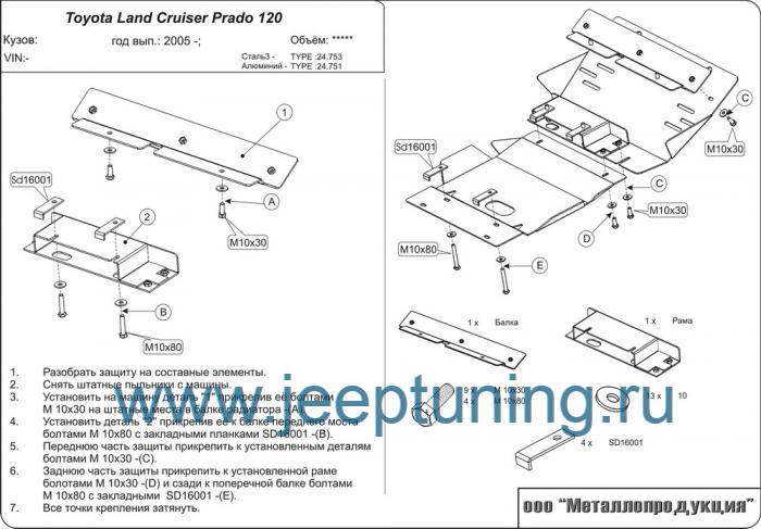 ЗАЩИТА КАРТЕРА И РУЛЕВЫХ ТЯГ(алюминий) МЕТАЛЛОПРОДУКЦИЯ для TOYOTA LAND CRUISER J12