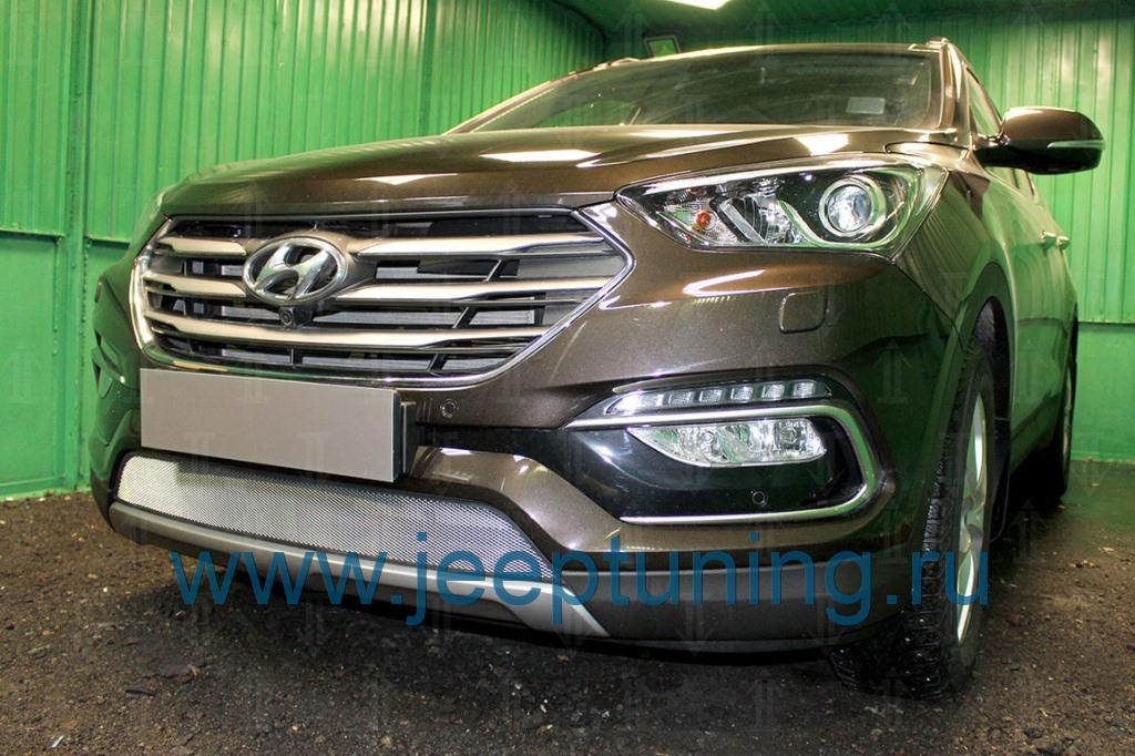 РЕШЕТКА РАДИАТОРА STANDART с датчиком ACC (хром) АВТОЛИДЕР для HYUNDAI SANTA FE PREMIUM