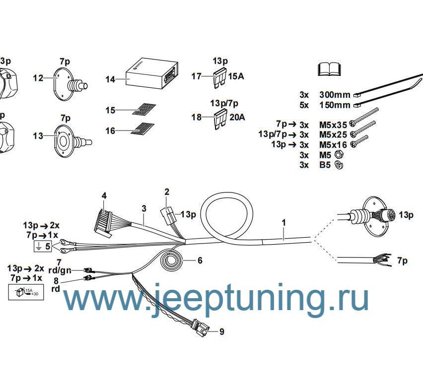 ЭЛЕКТРИКА К ФАРКОПУ ШТАТНАЯ ( 13 контактов)