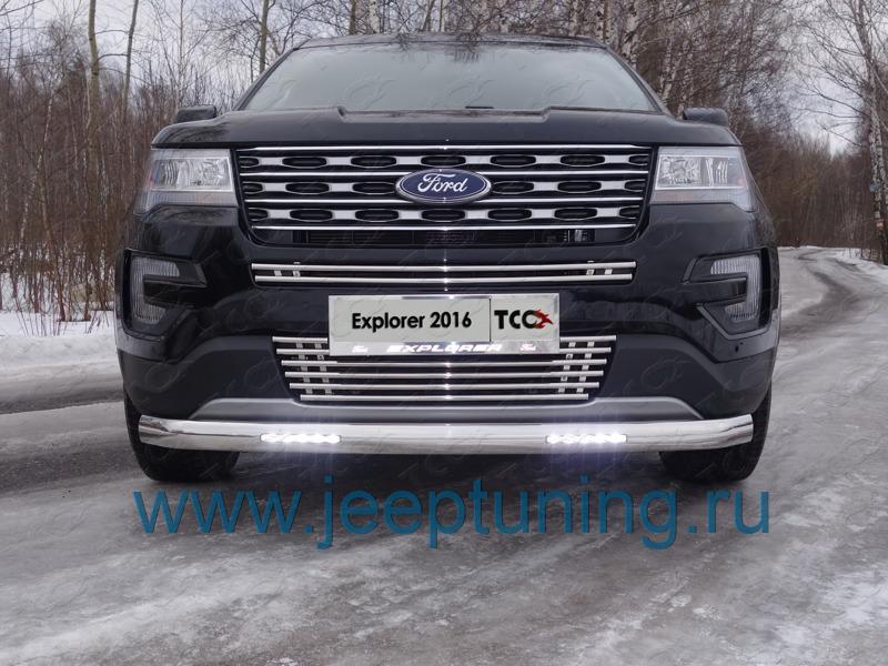ПЕРЕДНЯЯ ЗАЩИТА (овальная короткая с ходовыми огнями) TCC для FORD EXPLORER