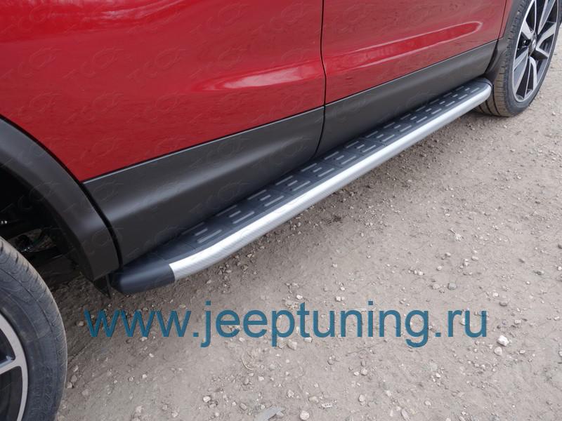 ЗАЩИТА ПОРОГОВ (алюминиевые,карбон серебро) TCC для NISSAN QASHQAI J11