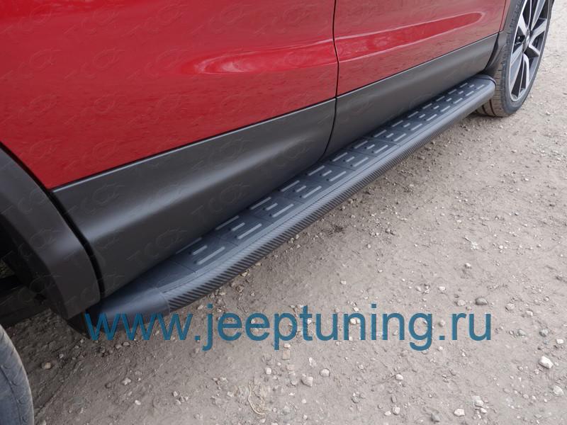ЗАЩИТА ПОРОГОВ (алюминиевые,карбон черные) TCC для NISSAN QASHQAI J11