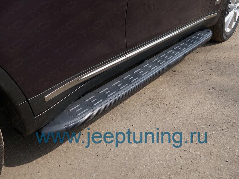 ЗАЩИТА ПОРОГОВ (алюминиевые,карбон черные) TCC для INFINITI QX70