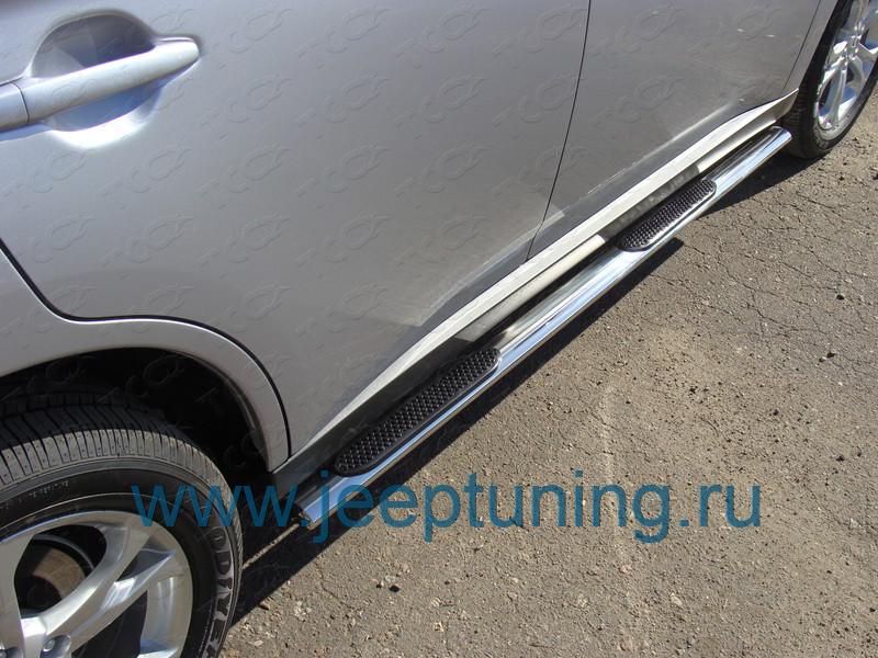 ЗАЩИТА ПОРОГОВ 75х42 мм (овальные) TCC для MITSUBISHI OUTLANDER