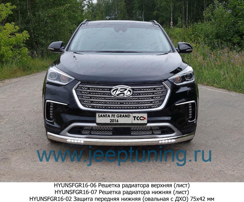 ПЕРЕДНЯЯ ЗАЩИТА (овальная, с ходовыми огнями) TCC для HYUNDAI GRAND SANTA FE