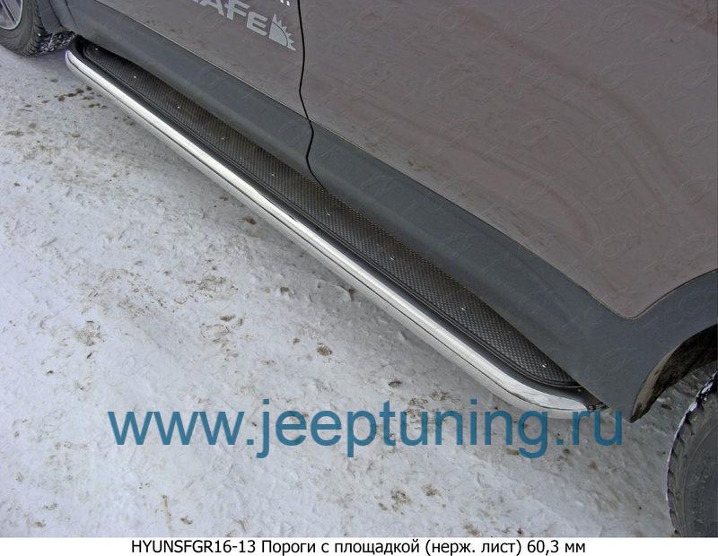 ЗАЩИТА ПОРОГОВ 60мм (лист нерж.) TCC для HYUNDAI GRAND SANTA FE