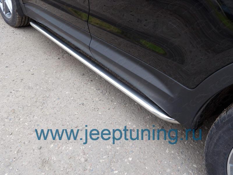 ЗАЩИТА ПОРОГОВ 75х42 мм (овальные гнутые) TCC для HYUNDAI GRAND SANTA FE