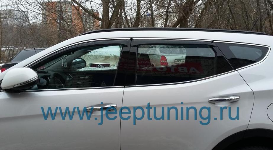 ДЕФЛЕКТОРЫ ОКОН (с хромированной окантовкой) V-STAR для HYUNDAI SANTA FE PREMIUM