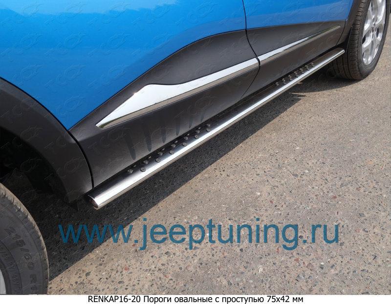 ЗАЩИТА ПОРОГОВ 75х42мм (овальные с проступью) TCC для RENAULT KAPTUR