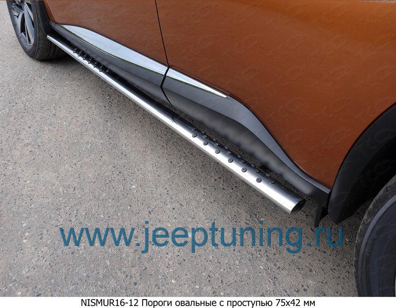 ЗАЩИТА ПОРОГОВ 75х42 (овал с проступью) TCC для NISSAN MURANO