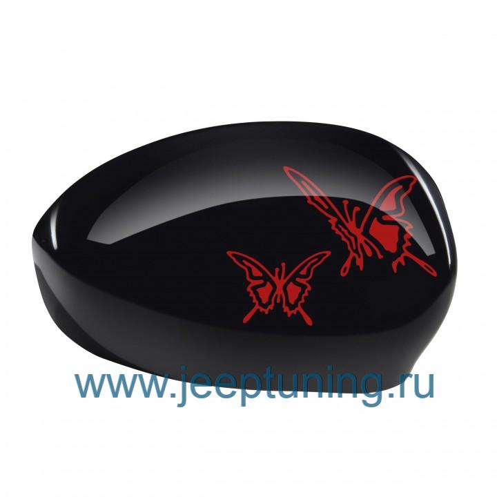 НАКЛАДКА НА ЗЕРКАЛА (с бабочкой, амарантовый на черном) FIAT для FIAT 500