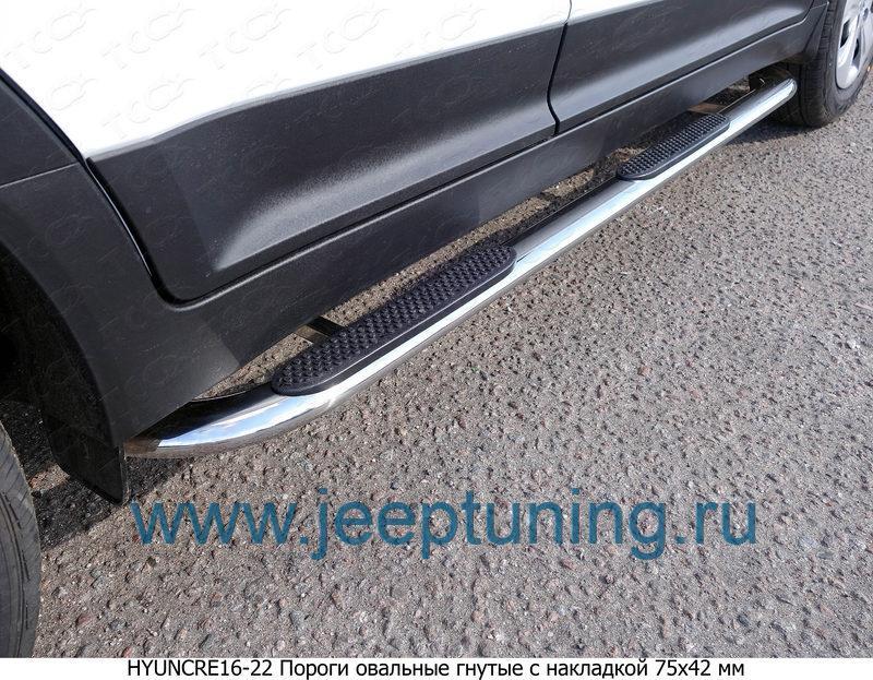 ЗАЩИТА ПОРОГОВ 75х42мм (овал гнутые) TCC для HYUNDAI CRETA