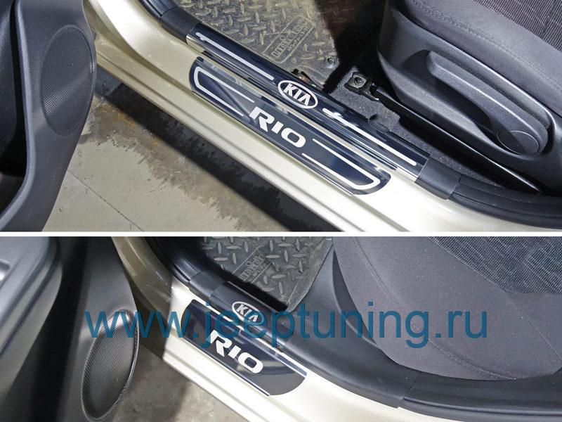НАКЛАДКИ (внешние и на пластиковые пороги (лист зеркальный надпись KIA) TCC для KIA RIO
