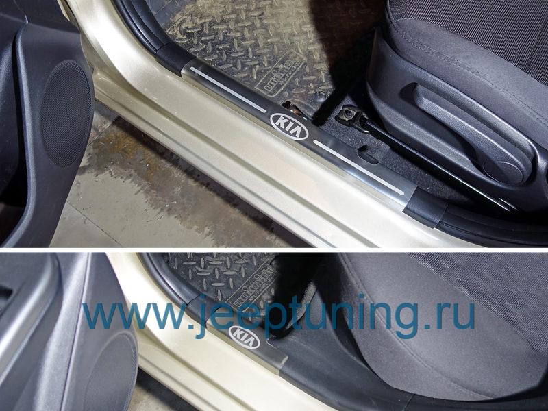 НАКЛАДКИ (на пластиковые пороги (лист шлифованный надпись KIA) TCC для KIA RIO