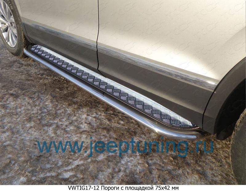 ЗАЩИТА ПОРОГОВ (овальные с площадкой) TCC для VOLKSWAGEN TIGUAN NEW