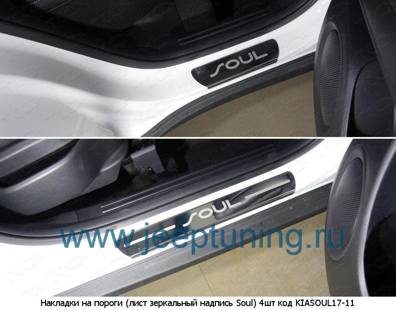 НАКЛАДКИ НА ПОРОГИ (лист зеркальный) TCC для KIA SOUL