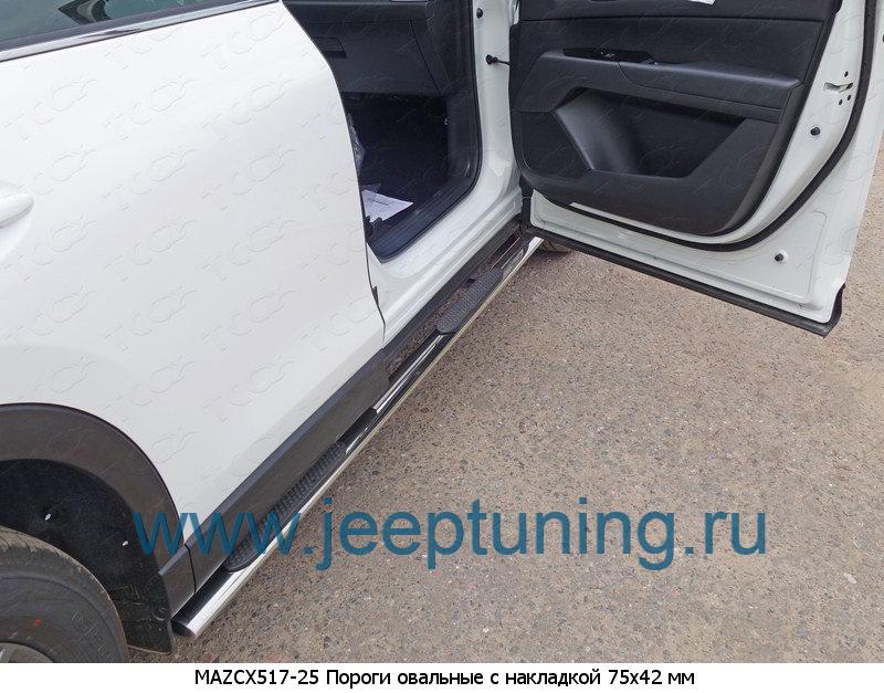 ЗАЩИТА ПОРОГОВ 75х42мм (овальные) TCC для MAZDA CX-5 NEW