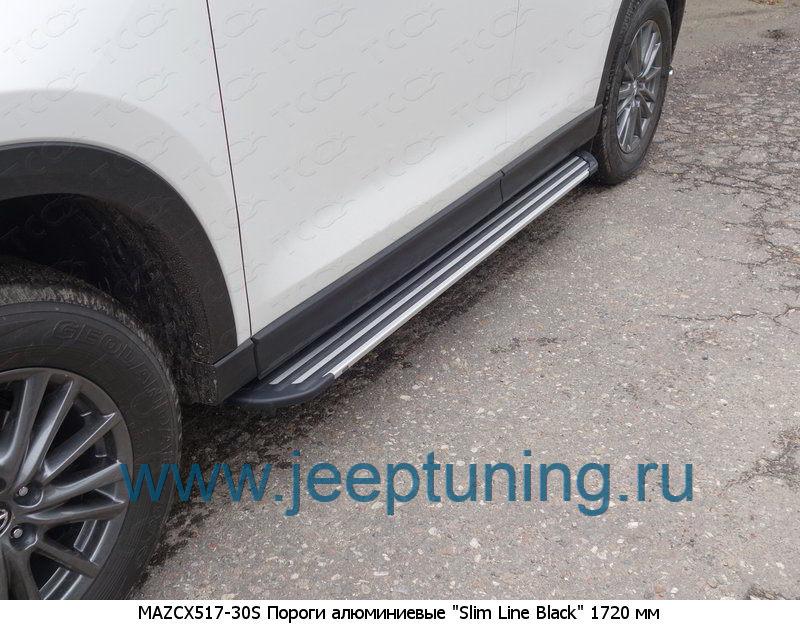 ЗАЩИТА ПОРОГОВ "Slim Line Silver" (алюминиевые,черные) TCC для MAZDA CX-5 NEW