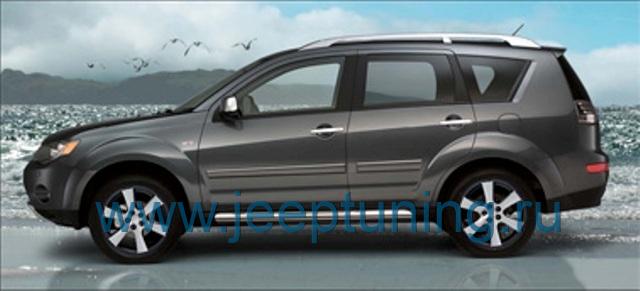 Аэродинамические накладки на пороги (со вставкой из нержавеющей стали,грунт или крашенные) MITSIBISHI для MITSUBISHI OUTLANDER XL