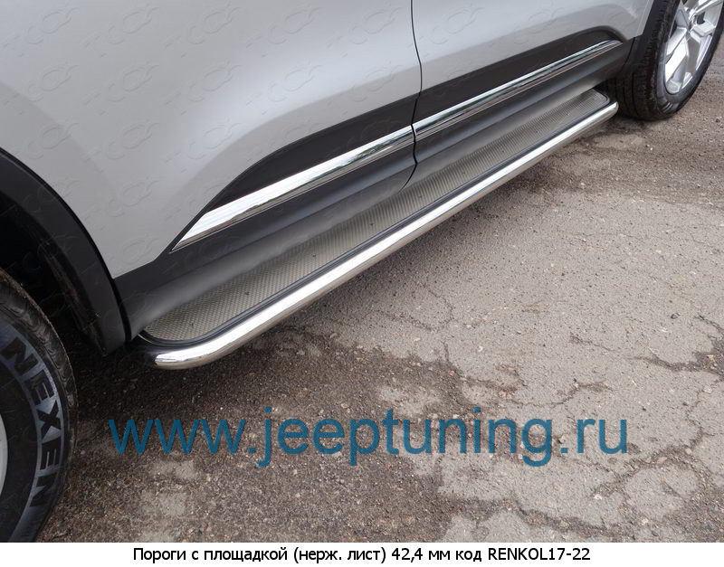 ЗАЩИТА ПОРОГОВ 42мм (лист нерж.) TCC для RENAULT KOLEOS