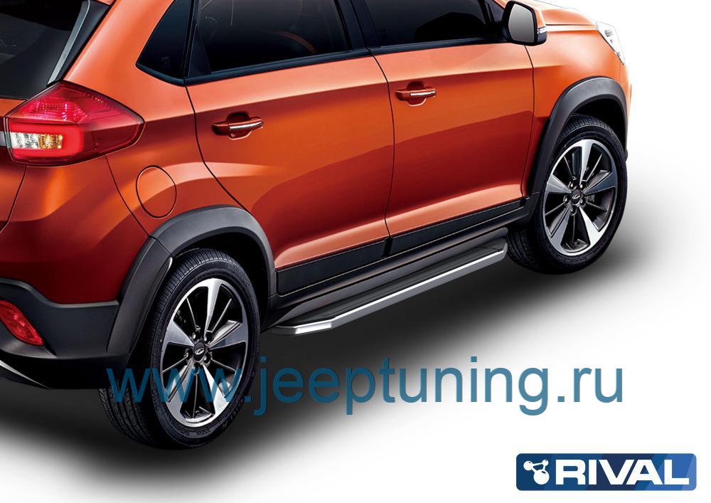 ЗАЩИТА ПОРОГОВ "PREMIUM" (алюминий0 RIVAL для CHERY TIGGO 2