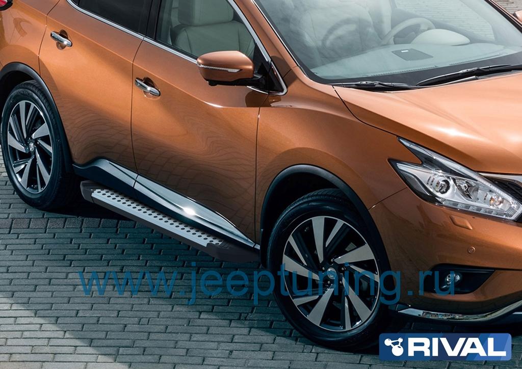 ЗАЩИТА ПОРОГОВ "BMW-STYLE-2" (алюминий) RIVAL для NISSAN MURANO