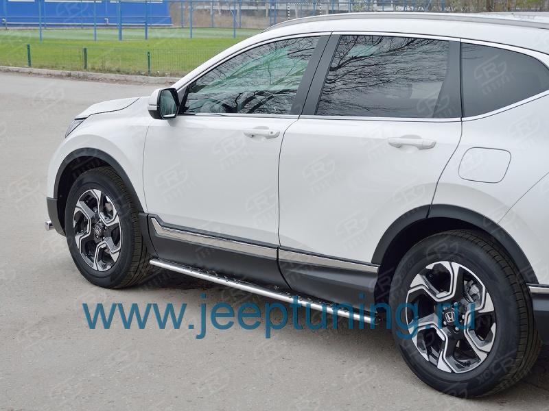 ЗАЩИТА ПОРОГОВ 75х42 (овальные с проступью RUSSTAL для HONDA CR-V