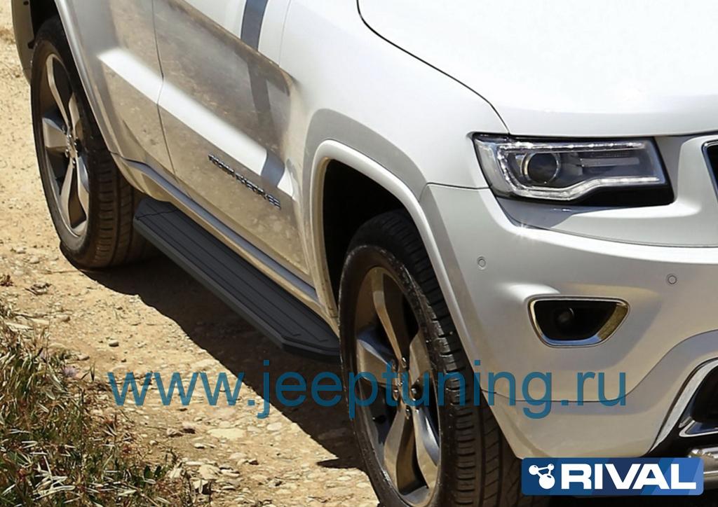 ЗАЩИТА ПОРОГОВ "BLACK" (алюминий) RIVAL для JEEP GRAND CHEROKEE