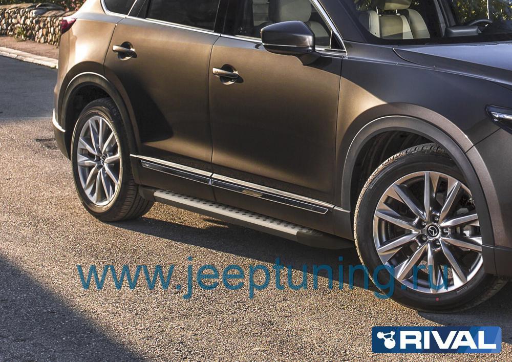ЗАЩИТА ПОРОГОВ "BMW-STYLE" (алюминий) RIVAL для MAZDA CX-9