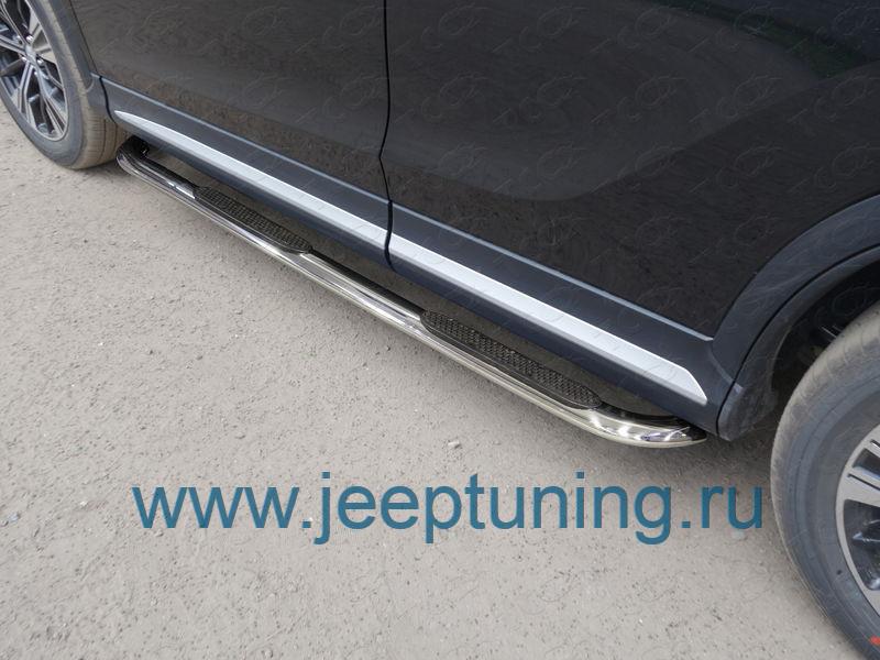 ЗАЩИТА ПОРОГОВ 75х42мм (овальные,гнутые) TCC для MITSUBISHI ECLIPSE CROSS