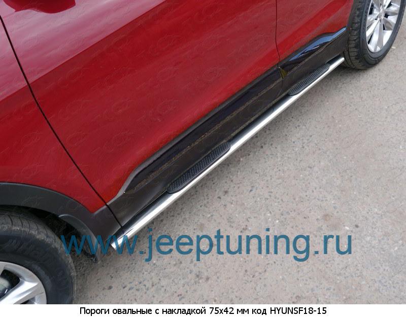 ЗАЩИТА ПОРОГОВ 75х42мм (овальные) TCC для HYUNDAI SANTA FE