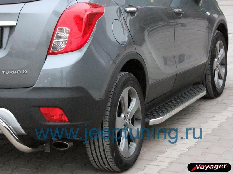 ЗАЩИТА ПОРОГОВ (алюминиевые с пластмассовой накладкой) VOYAGER для OPEL MOKKA