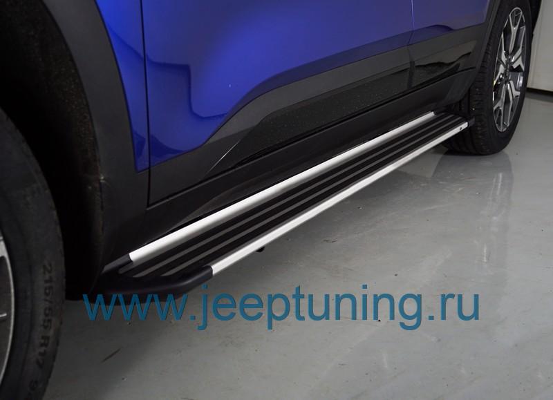 ЗАЩИТА ПОРОГОВ "Slim Line Silver" (алюминий) TCC для KIA SELTOS