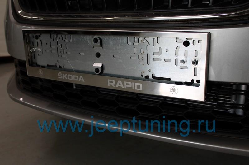 РАМКА НОМЕРНОГО ЗНАКА 2шт (нерж) TCC для SKODA RAPID NEW