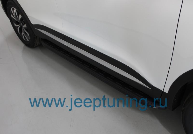 ЗАЩИТА ПОРОГОВ (алюминиевые,карбон черные) TCC для CHERY TIGGO 7 PRO