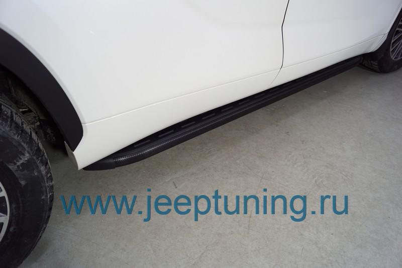 ЗАЩИТА ПОРОГОВ (алюминиевые,карбон черные) TCC для TOYOTA HIGHLANDER NEW