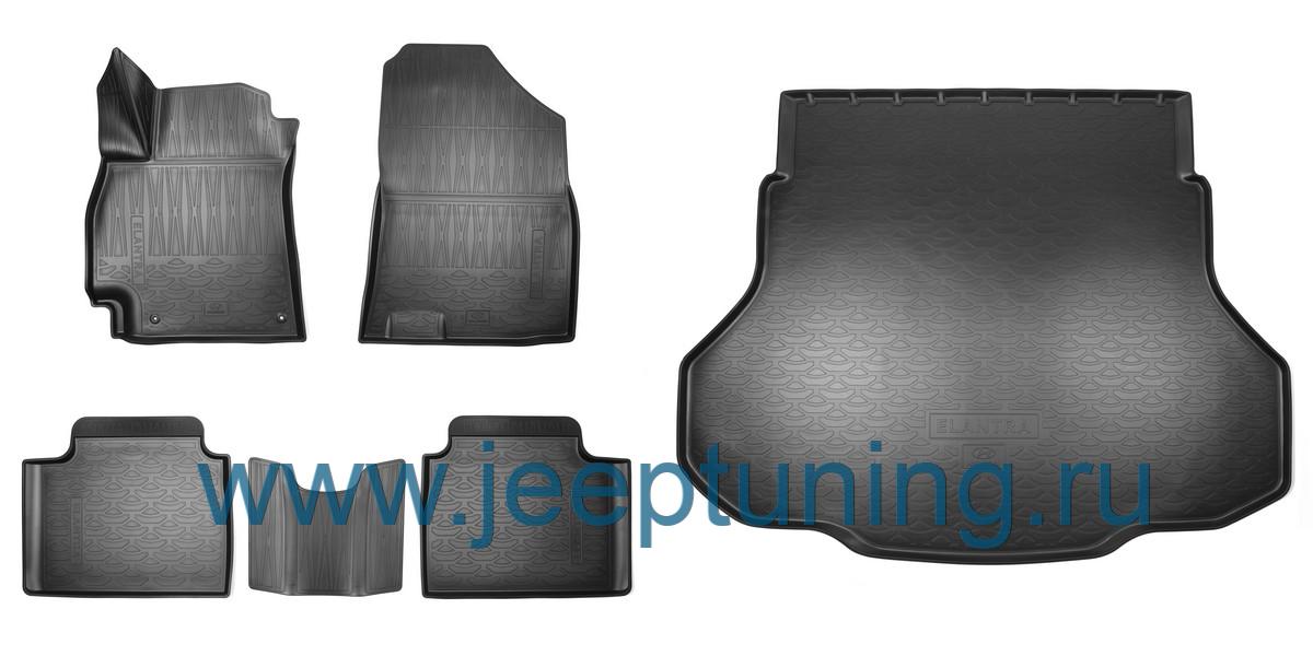 КОВРИКИ САЛОНА+БАГАЖНИК (резиновые,комплект) HYUNDAI для HYUNDAI ELANTRA NEW
